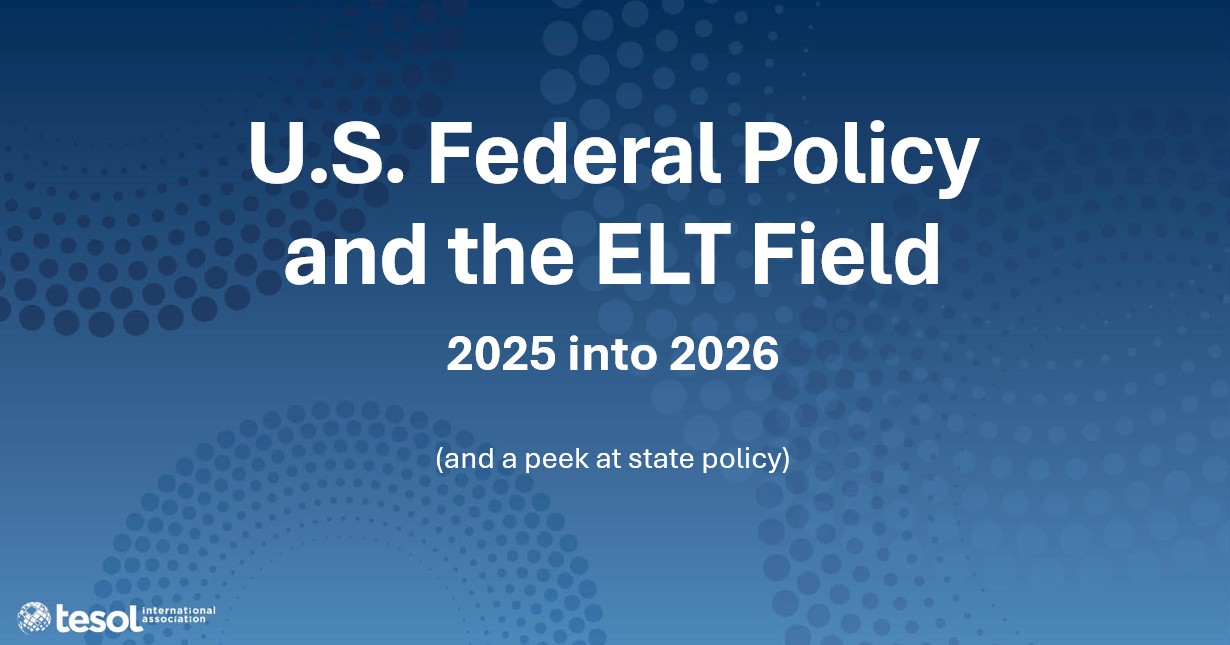 Support U.S. federal funding for education! Contact your members of Congress today to support appropriations for English language teaching and multilingual learners of English.
